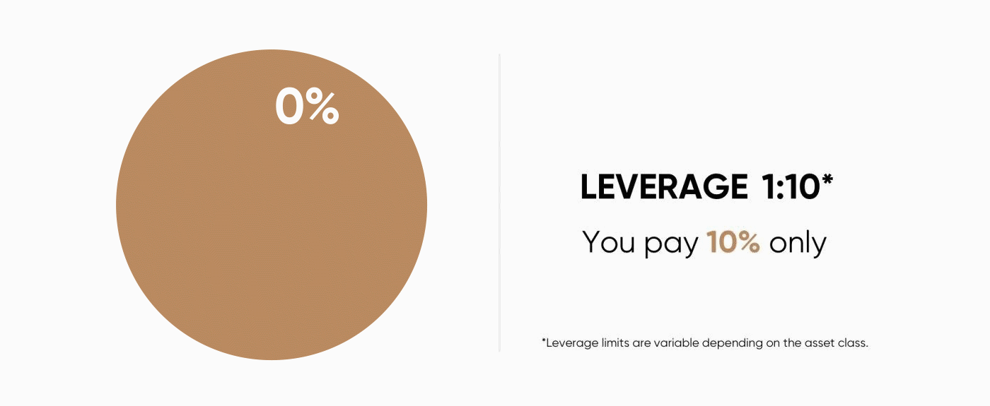 Leveraged trading is also referred to as trading on margin. A10% margin means that you have to deposit only 10% of the value of the trade you want to open. The rest is covered by your CFD provider.